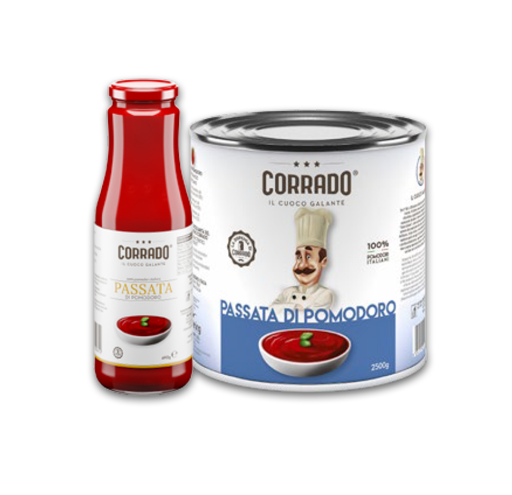La Passata di Pomodoro Corrado trasforma il pomodoro maturo in una salsa vellutata, pronta da usare nelle preparazioni tradizionali, così come in quelle più originali.